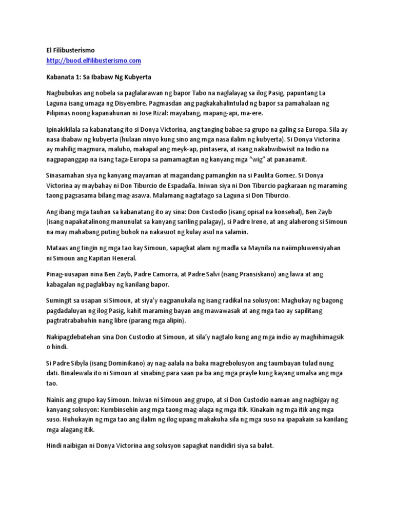 Sa kaniya lumalapit ang mga pari upang manghingi ng payo kung nasa isang gipit na sitwasyon. Mga buod ng bawat kabanata ng el filibusterismo ni jose rizal. Maluwag ito at puro binata ang mga nakatira na pawang nangangasera. Marami pang dapat gawin upang sumulong ang bansa.