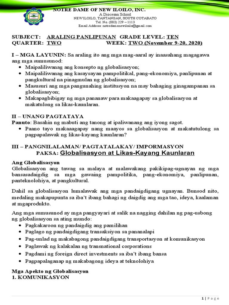 Mga Tanong At Sagot Tungkol Sa Globalisasyon. Kasalukuyang patuloy ang ginagawang research para dito. Ang mga sagot ay nilayong makatulong at magbigay ng pananaw, hindi bilang mga opisyal na pahayag ng doktrina ng simbahan.