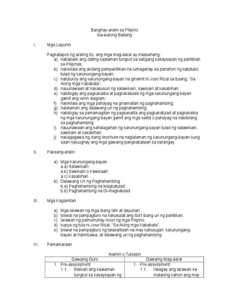 Banghay Aralin Tungkol Sa Dalawang Uri Ng Paghahambing. Daily log plan in filipino grade 7. Ano ano ang naramdaman mo sa kapayapaan.