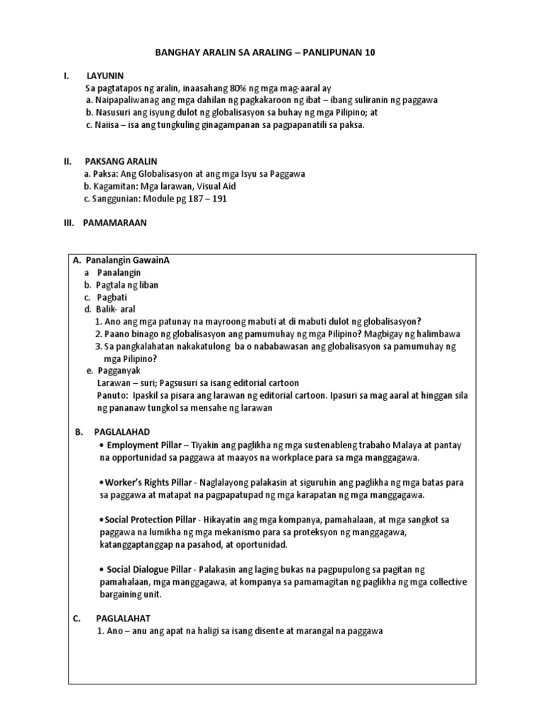 Lesson Plan 10 Docx Aralin 2 Globalisasyon 5 Perspektibo O Pananaw Tungkol Sa Kasaysayan Ng Globalisasyon I Layunin Sa Pagtatapos Ng Aralin Ang Mga Course Hero from www.coursehero.com Download banghay aralin sa araling panlipunan 4. Ang mga parte nito ay: Globalisasyon ang mga sumusunod ay limang perspektibo o pananaw tungkol sa globalisasyon.