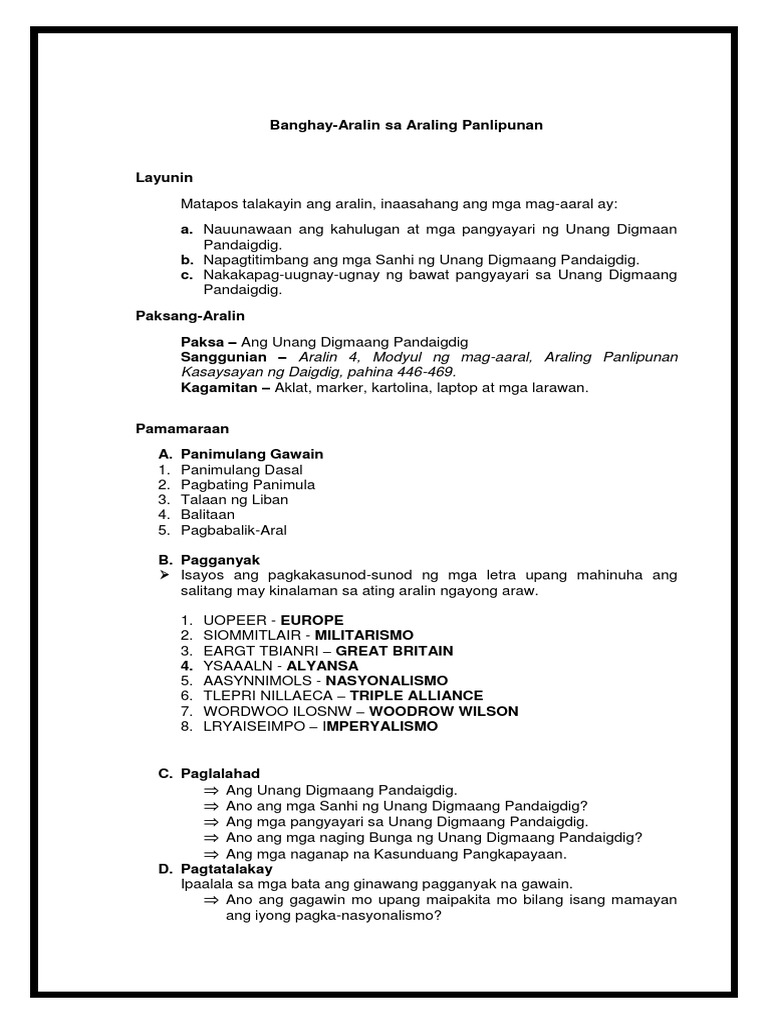 Https Rbgalit Files Wordpress Com 2017 03 Pt Lesson Plan Pdf from Mga pinakilalang labanan (ibigay ang petsa at pangalan) ang pinakamahabang labanan ng unang digmaang pandaigdig dahil sa pagnanais ng isang heneral na. Maaari ninyong naising gamitin ang isa o higit pa sa mga ideyang ito. Ang unang digmaang pandaigdig (ingles: