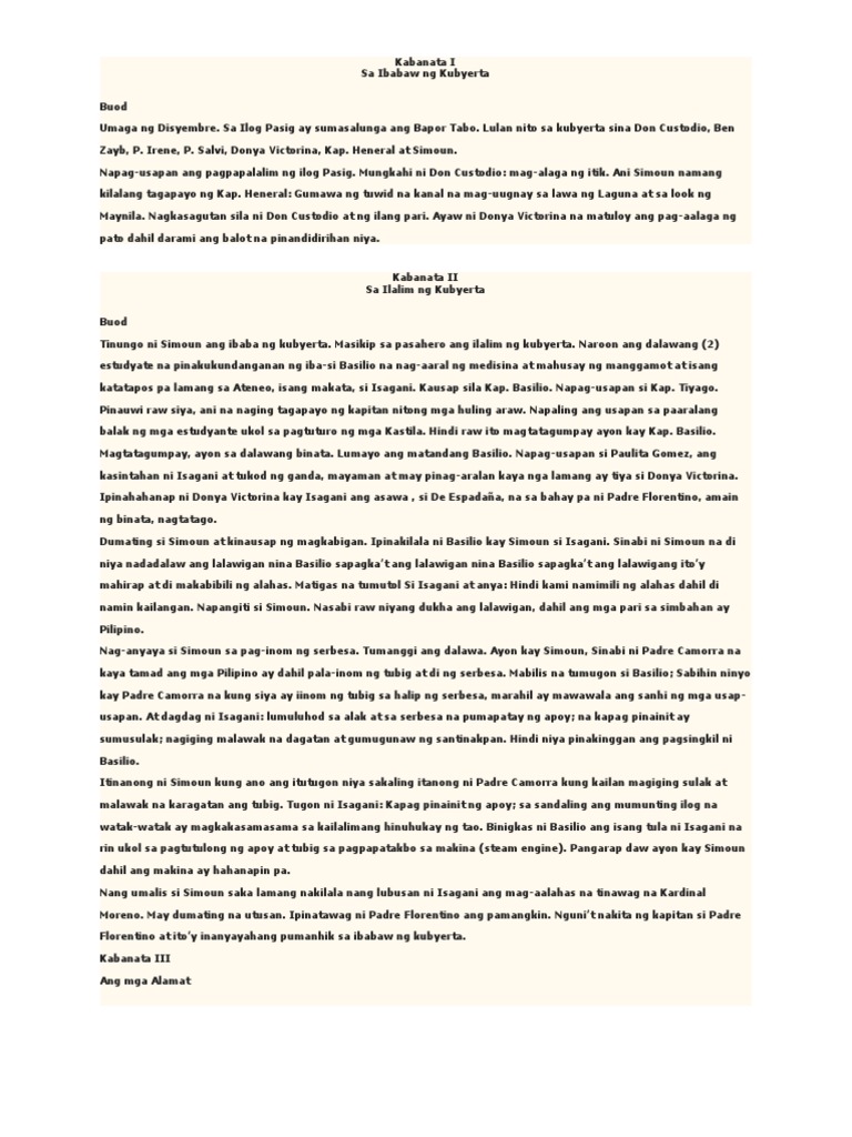 2 from El filibusterismo buod kabanata 1: Lagi kong sinasabi na isang filibustero ang ayaw magbayad para sa mariringal na libing may 04, 2016 · may mga bagay din na hindi lamang makikita sa mundo ng el. Nagmamadaling umalis si don tiburcio dahil akala ay siya ang pinadadakip na kastila.