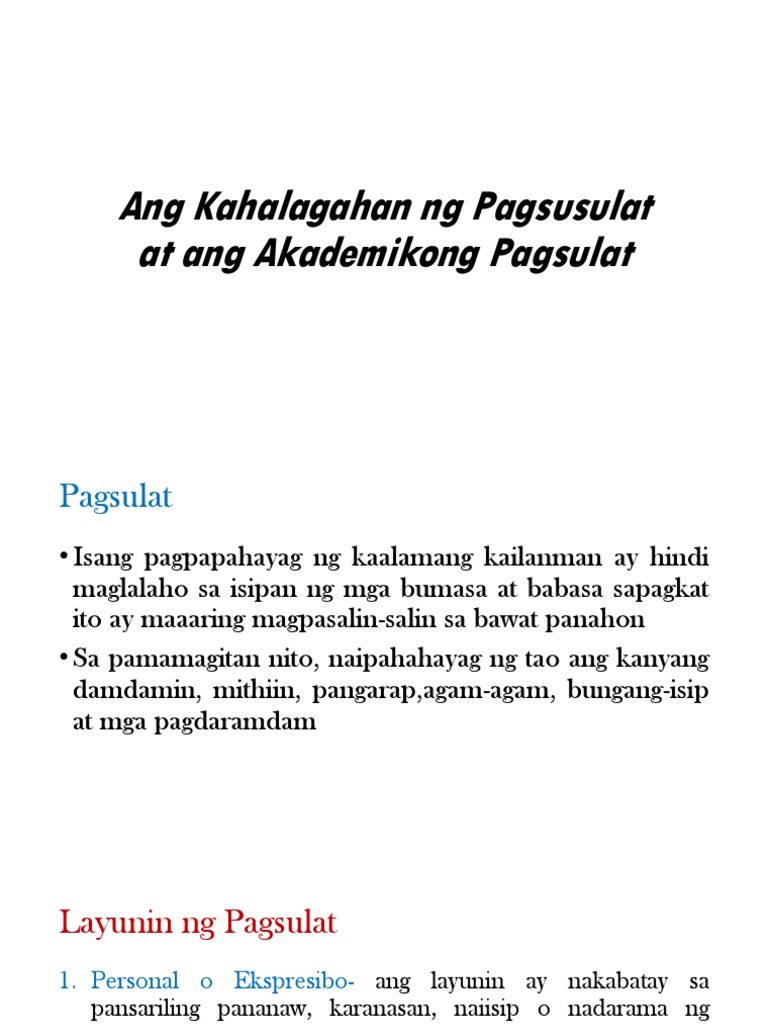 Katuturan Layunin At Kahalagahan Ng Pagsulat Pptx from imgv2-2-f.scribdassets.com Gawing simple ang pagpapaliwanag sa kahalagahan ng teksto. Ang kahalahagan ng pagsusulat at ang akademikong pagsulat. Nagagamit ang mga kasanayan sa pagbasa sa pagsusuri ng iba't ibang uri ng teksto na magagamit sa mga gawain ng akademikong pagsulat.