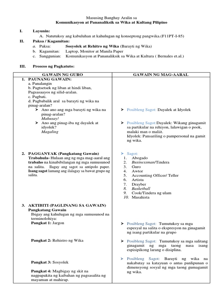 Banghay Aralin Sa Pagtuturo Ng Wika Ng Unang Taon Sa Kolehiyo from imgv2-2-f.scribdassets.com Download & view masusing banghay na aralin sa filipino as pdf for free. Use the download button below or simple online reader. Halina't basahin at gawing inspirasyon sa iyong paksang napili ang mga talumpating nakalap namin.