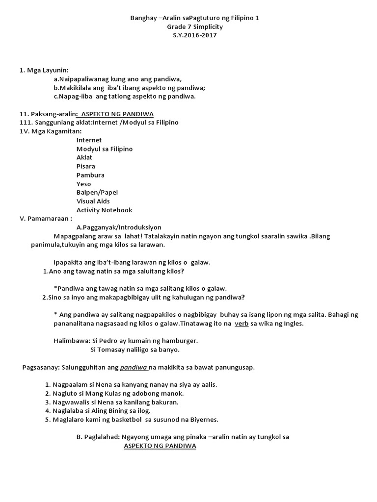 Banghay Aralin Tungkol Sa Pandiwa Grade 1. 3 quality banghay aralin sa grade 3 mathematics. Lesson plan agham grade 1.