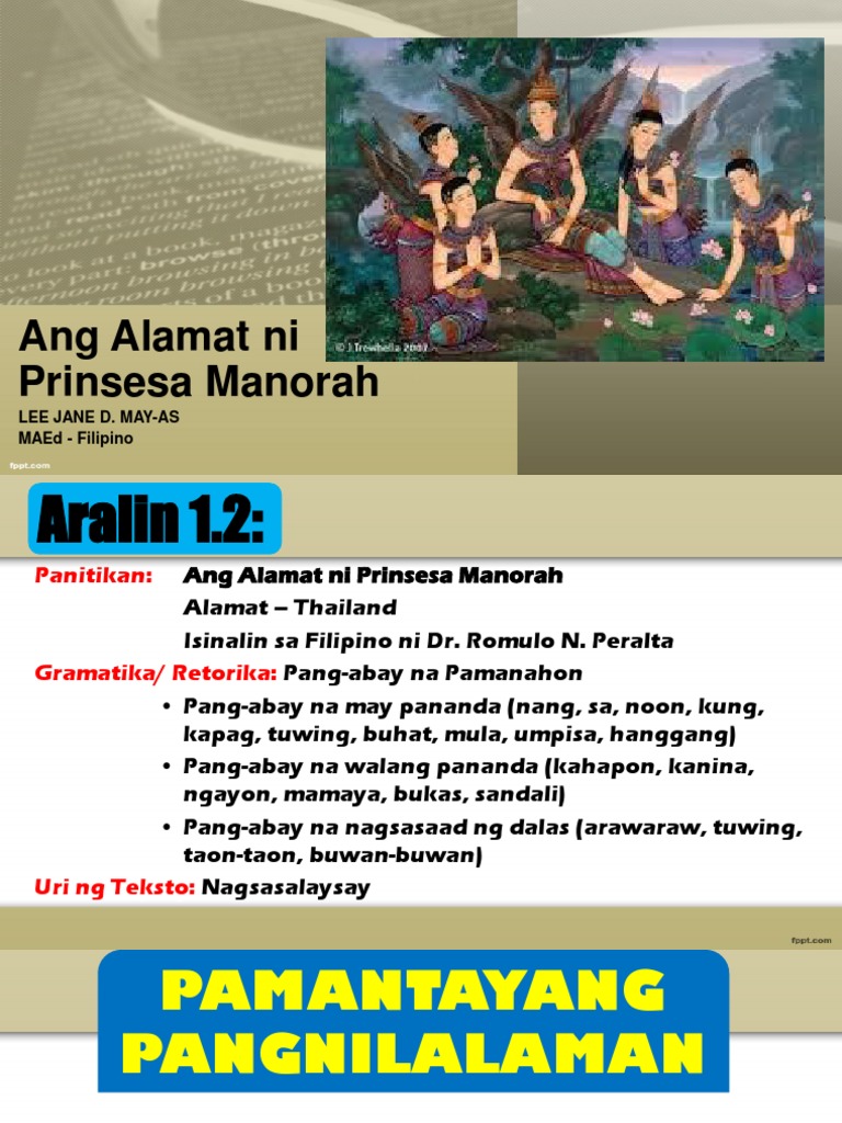 Ang Alamat Ni Princess Manorah Gawain 1 1 Sino Si Prinsesa Manorah Bago Siya Nahuli Ni Prahnbum 2 Sino Si Prinsipe Suton from answers4you-ph.com Layunin nahuhulaan ang maaaring mangyari sa akda batay sa ilang pangyayaring napakinggan. Peralta)ang alamat ni prinsesa manorah (isinalin sa filipino ni dr. Ang alamat ni prinsesa manorah (thailand) isinalin sa filipino ni dr.