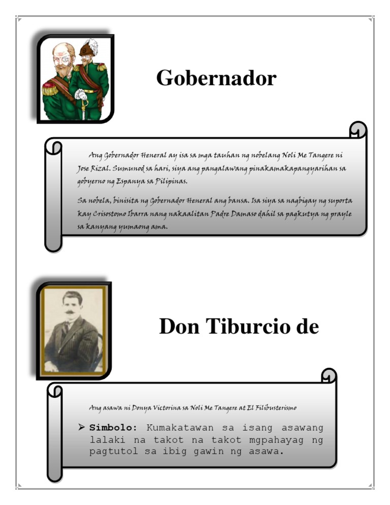 Mga Tauhan Sa Noli Me Tangere. isang mapagmahal na ina ipinagtabuyan sa kumbento nang kanyang hanapin ang nawawalang anak na si crispin. nagpalaboy at tuluyang nabaliw nang hindi na niya mahanap ang dalawang anak. Mga tauhan ng noli me tangere.