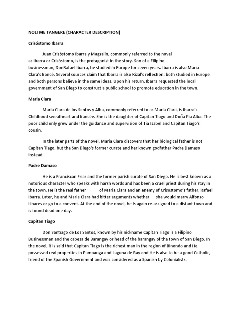 Maria clara she is seen as the daughter of capitan tiago and doa pia alba. He is considered one of the most hospitable men in the town. Noli me tángere (touch me not) (noli me tángere, #1) by. María clara, whose full name is maría clara de los santos, is the mestiza heroine in noli me tángere, a novel by josé rizal, the national hero of the republic of the philippines.