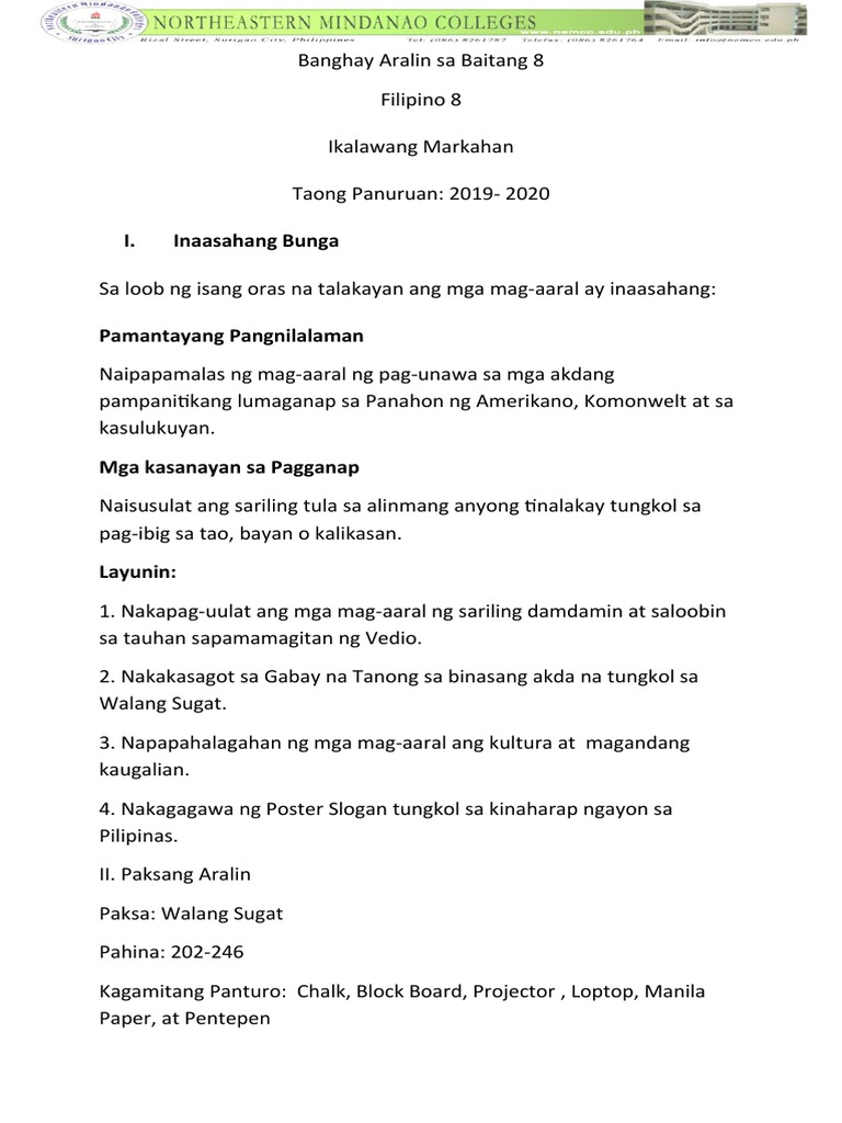 Kaya naman, tinatawag itong lesson plan sa ingles. Naipamamalas ang mga natamong kaalaman at kakayahan sa paglinang ng kakayahang. Blogasiaph april 28, 2019 0. Walang sugat ni severino reyes wika/gramatika: