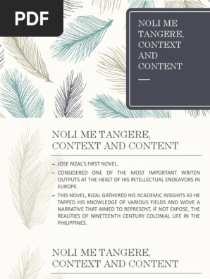 Noli Me Tangere Narrative Report. Our teacher edition on noli me tangere can help. Noli me tángere, latin for touch me not, is an 1887 novel by josé rizal during the colonization of the philippines by the spanish (european (white) colonial european (white).