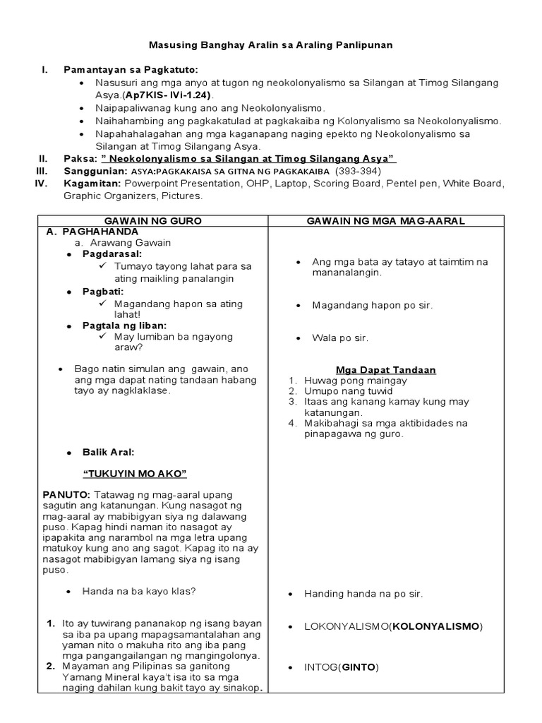 Banghay Aralin Tungkol Sa Neokolonyalismo. Mga hakbang at panuntunan sa pagsasagawa ng makatotohanang proyektong panturismo inaasahang pagganap: Enhancing the day's lesson preparing for the magsaliksik tungkol sa iba't ibang pandaigdigang new lesson organisasyon.