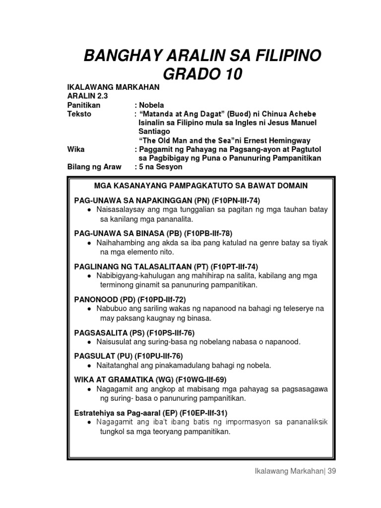 Ano ang dapat gawin kung may baha? mapahalagahan at makalugdan ang buong akda. Isulat ang titik ng tamang sagot sa patlang. Banghay aralin sa pagtuturo ng filipino 10.doc.