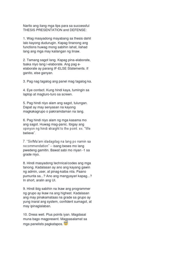Mga Tanong Sa Thesis Defense Filipino. Sa mga nakapagdefence ng mga thesis title nila. Please need some adive and tips.