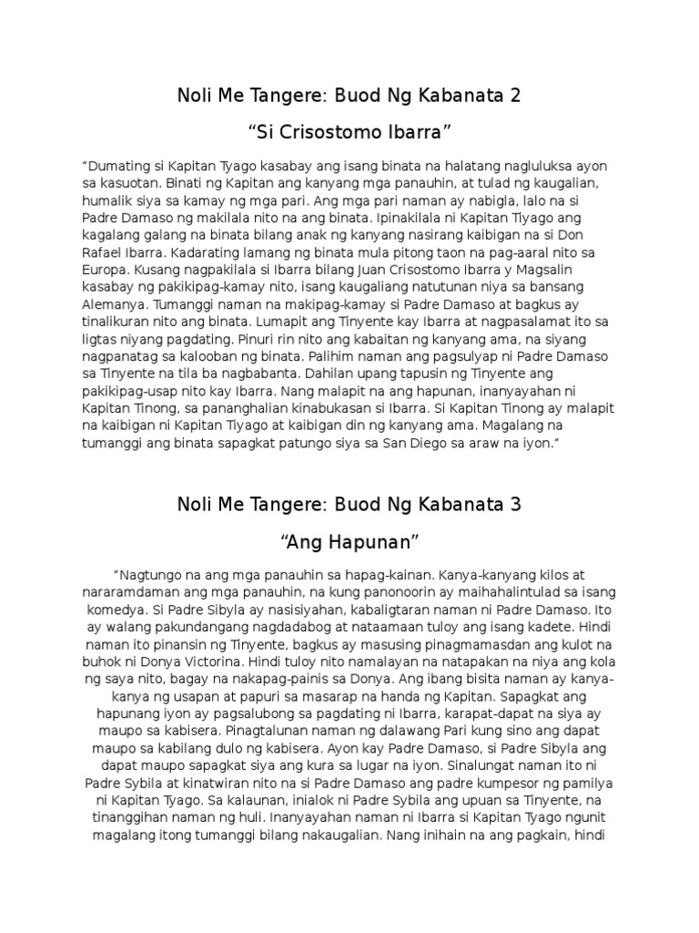 Noli me tangere buod kabanata 1: Isang malaking pagtitipon ang gaganapin sa bahay ni don noli me tangere buod kabanata 2: Nang kakamayan ni ibarra si damaso ay tumalikod ito. Magiliw na nakipagkamay si kapitan tiyago, kasama si padre damaso, sa mga bisita kabilang si crisostomo ibarra.