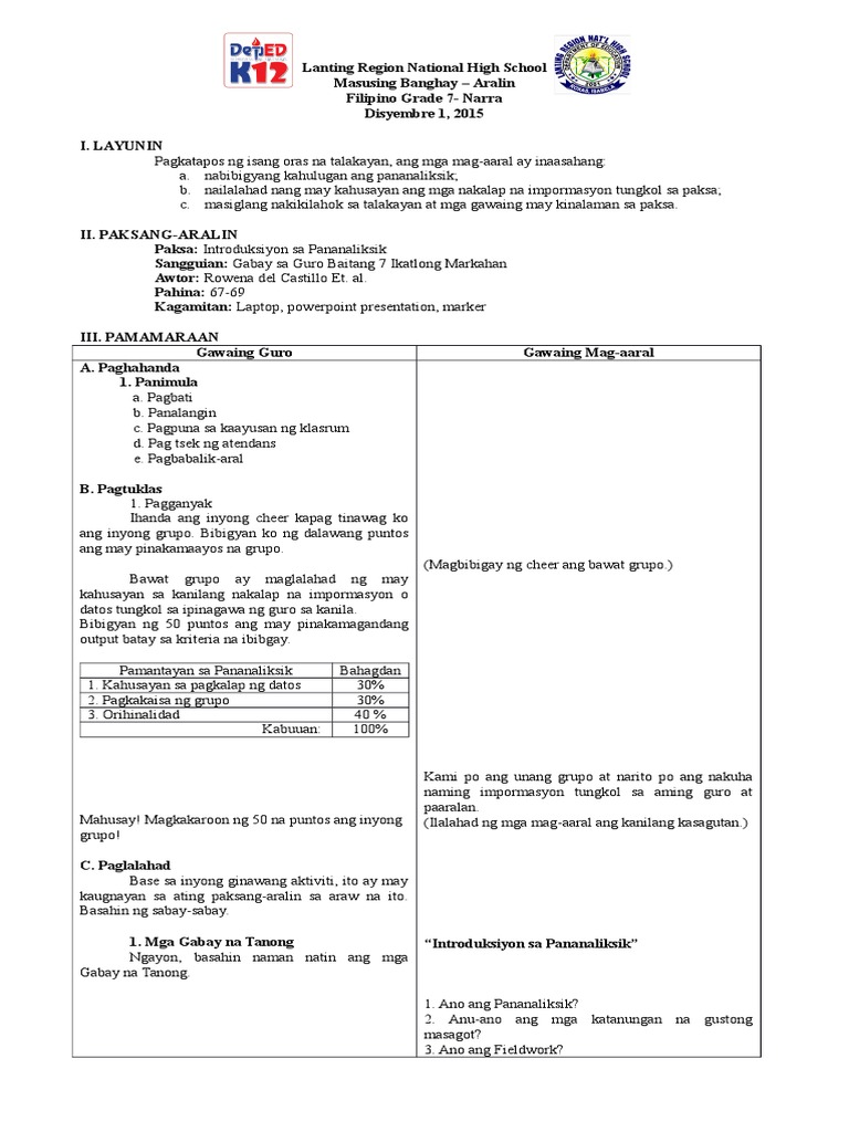 Mga hakbang at panuntunan sa pagsasagawa ng makatotohanang proyektong panturismo inaasahang pagganap: Salamat din po sa aming mga magulang sa patuloy na pagkakaloob sa amin ng aming mga pangangailangan. Pagal * nakinig bang mabuti sa mga panuto? Banghay aralin sa filipino 8.