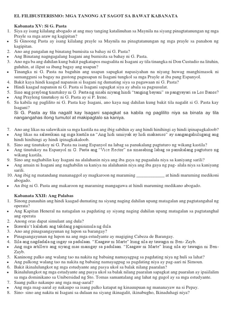 Si Basilio Mga Tanong At Sagot Sa Bawat Kabanata Ng El Filibusterismo. More images for si basilio mga tanong at sagot sa bawat kabanata ng el filibusterismo » Ang mga alamat (el filibusterismo) 1.