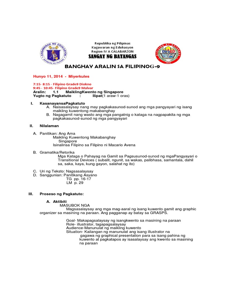 Banghay Aralin Sa Filipino Tungkol Sa Maikling Kwento. Banghay aralin sa filipino 4 tungkol sa simuno at panaguri at ang mga gamit nito sa pangungusap by jlimbawan. Ang kwento ni mabuti ni genoveva matute tungkol saan ang napanood niyo klas?