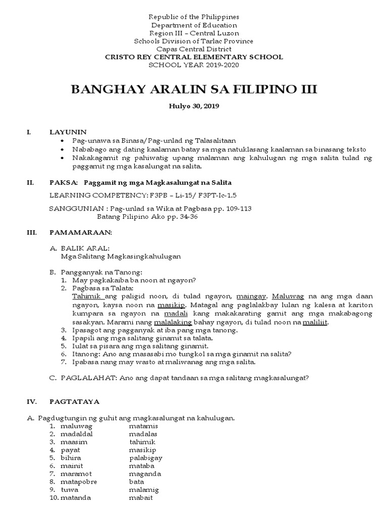 Ang banghay aralin na ito ay binubuo ng mga aralin tungkol sa mga uri ng teksto. Download banghay aralin sa araling panlipunan 4. Mga makaysaysayng pook sa pilipinas iii. Ang mga parte nito ay: