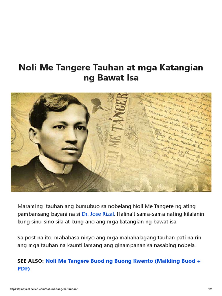 Tauhan Sa Noli Me Tangere At Katangian. May mga kaisipan siyang una sa kanyang panahon kaya't hindi siya maunawaan ng marami. Copyright documents similar to mga tauhan sa noli me tangere.