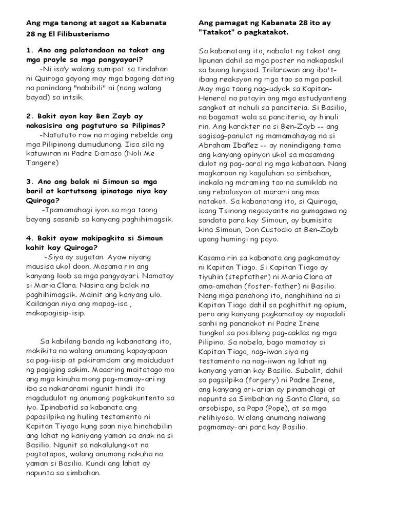 El Filibusterismo Kabanata 8 Tanong At Sagot. ••• mga tanong at sagot. Papaano makatulong ng malaki ang mga prayle.