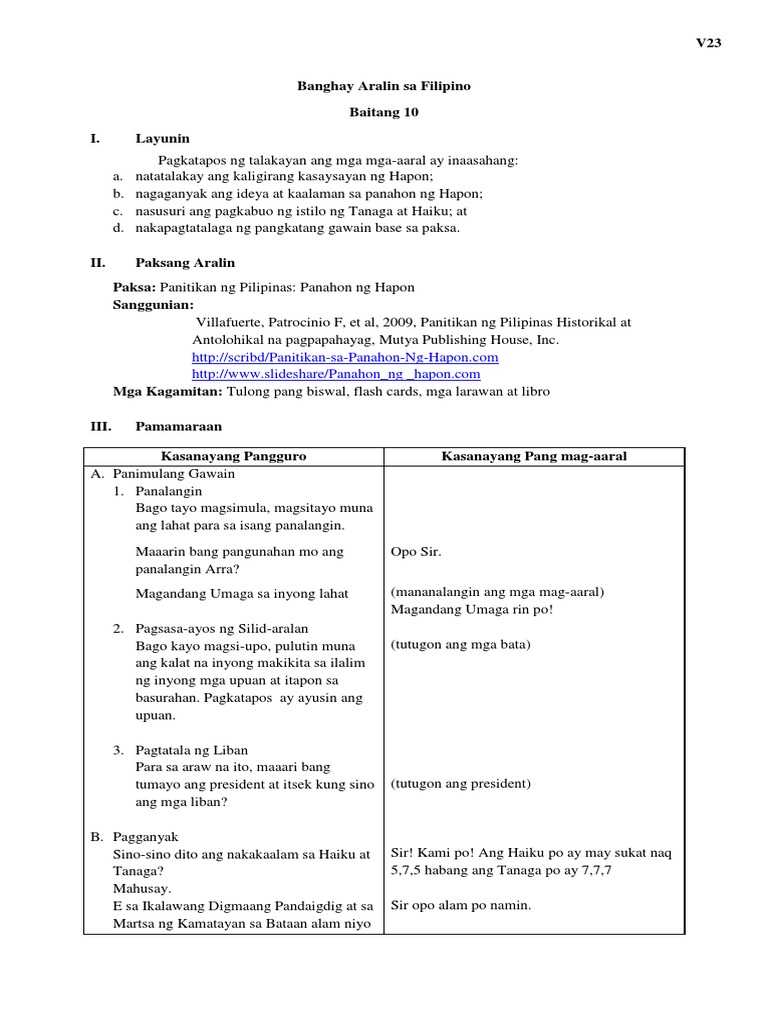 Lessno Plan Sa Filipino from cdn.slidesharecdn.com Sa deliberasyon ng senado kaugnay sa panukalang gawing siyam ang sinag ng araw sa watawat ng bansa, nais ni sotto na palitan ang linya sa pambansang awit na, ang mamatay ng dahil sa 'yo at gawing ang ipaglaban kalayaan mo. a number of years already, some people and mostly. Read this essay on banghay aralin sa filipino. Ngunit nagkakaintindihan sapagkat tayo'y pilipino.