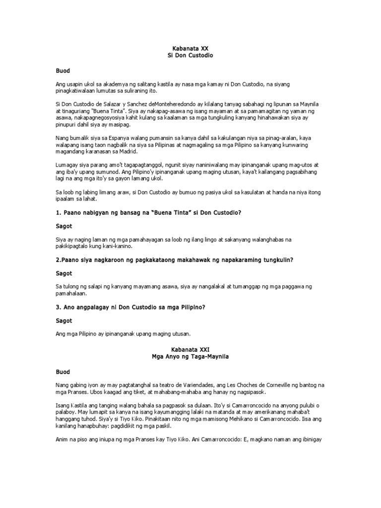 Pinigilan siya sa pagpasok at pinaghintay sa labas ng bahay ng kanyang. A short class ppt presentation on rizal's el filibustersimo kabanata 6. Laughter and tears mga halimbawa ng tanong at sagot lakambini answers: Mga tauhan sa el filibusterismo.