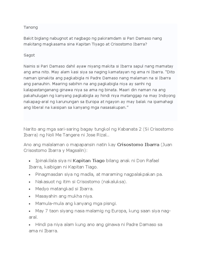 Mga Tanong At Sagot Sa Noli Me Tangere Kabanata 2. Noli me tangere kabanata 2 si crisostomo ibarra with audio. Gayahin at isulat angtable 1 sa inyong sagutang papel at doon ilagay ang inyong sagot.1.