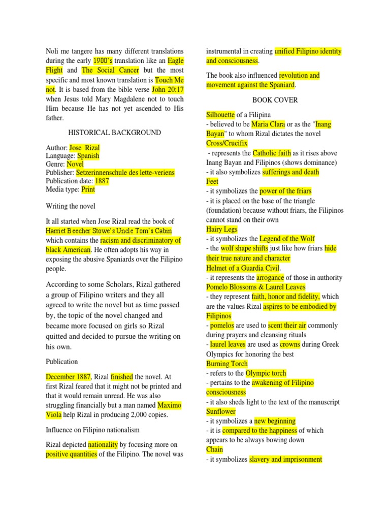 Noli Me Tangere Historical Background. • noli me tangere was considered to be one of the. Get the summaries, analysis, and quotes you need.