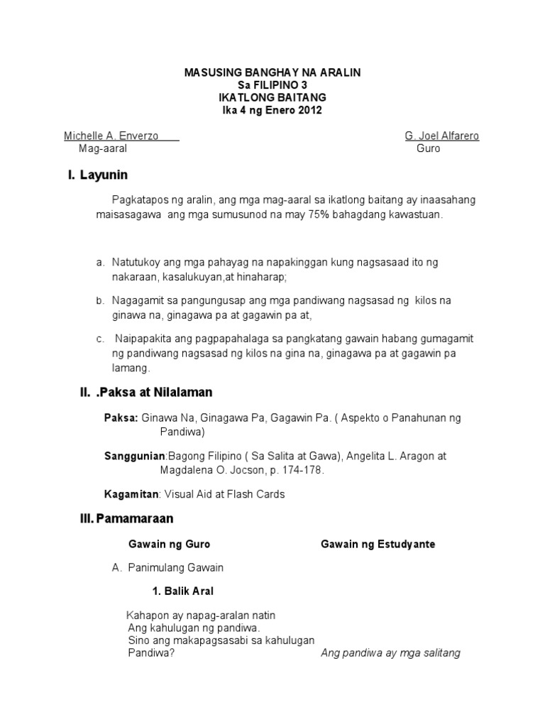 Detalyadong Banghay Aralin Sa Filipino Pandiwa from itg.crustytozo.pw Ang aralin na nauna sa aspekto ng pandiwa ay ang paksa (topic) na pagkilala sa pandiwa. Nakatayo lang ito sa may pintuan kasama ang hanging hindi rin gumagalaw. Magsaliksik tungkol sa iba pang mga.