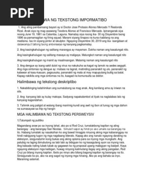 Filipino 4 pagsagot sa mga tanong sa mga tekstong pang impormasyon