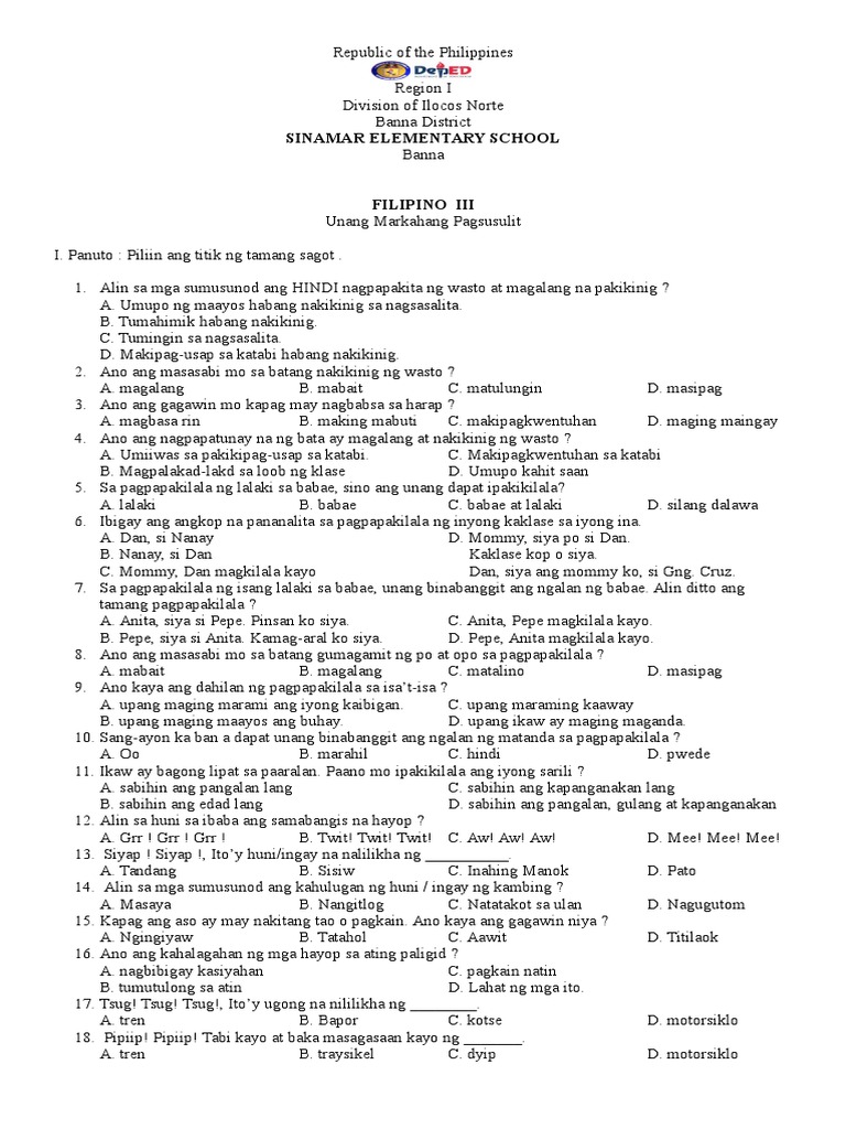 Mga Tanong Para Sa Filipino Quiz Bee. Aug 28, 2016 · buwan ng wika quiz bee 1. Alin sa mga sumusunod ang orihinal na salin sa wikang filipino ng salitang.