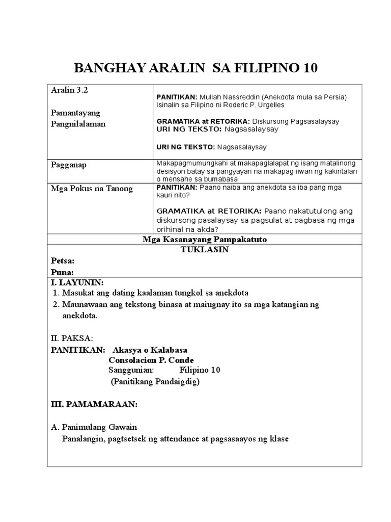 Ang ang tuson tusong g katiwa katiwala la parabula mula sa syria b. Download & view masusing banghay aralin sa filipino iii as pdf for free. Para 'tong sakit na kumakalat na kasimbilis ang isang kidlat. 10 banghay aralin sa character education ikalawang baitang inihanda ni: