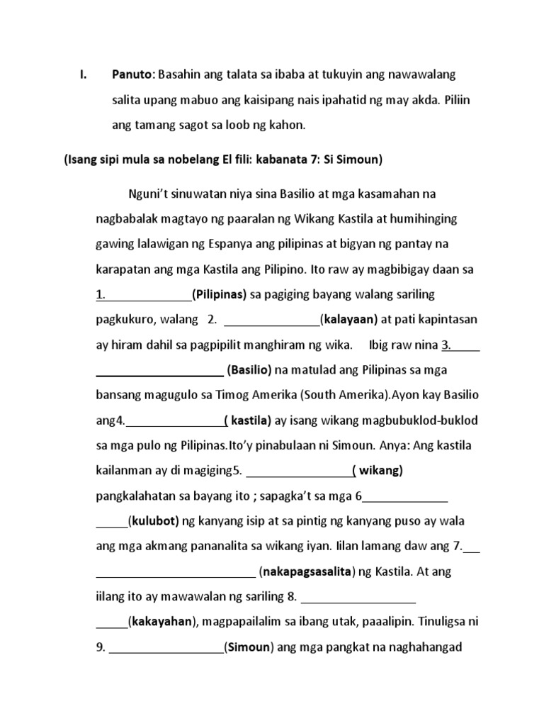 Narito ang aming bersyon ng el filibusterismo buod ng bawat kabanata pati na rin ang mga talasalitaan na ginamit dito. Mga tanong at sagot 1. Ang siyam niyang kasamahan sa pagsusulit ay.